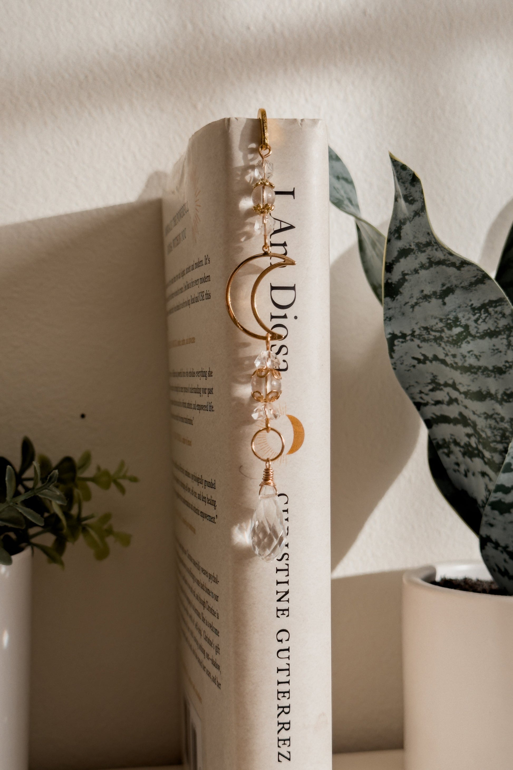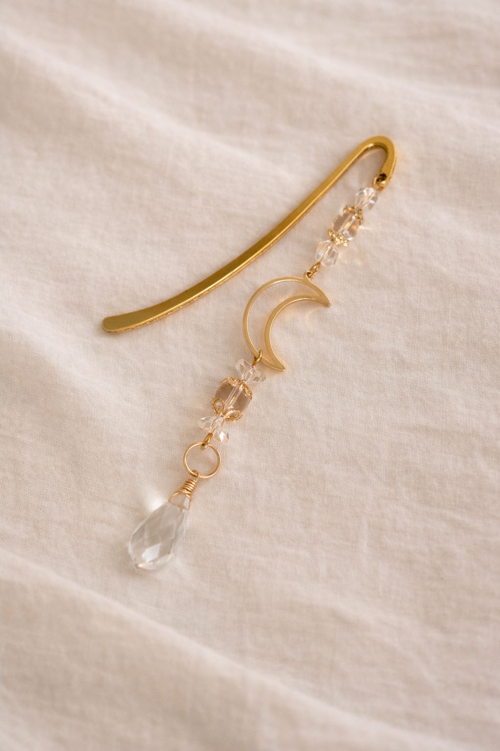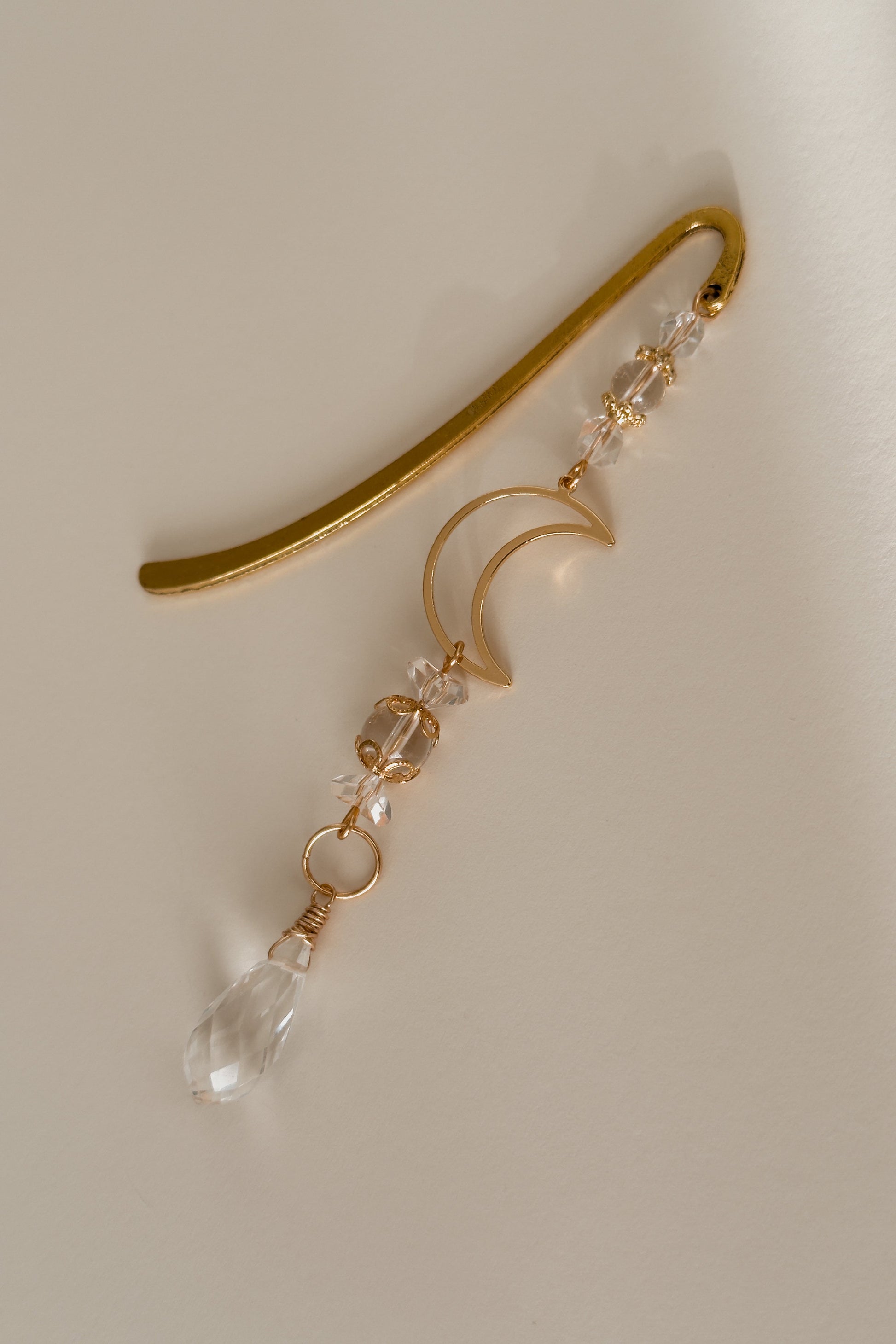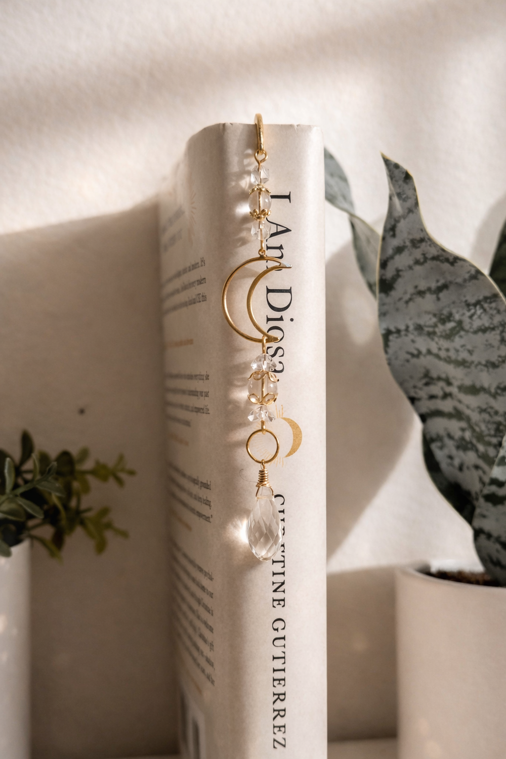 • Materials: Clear quartz gemstone, gold plated elements, seed beads.