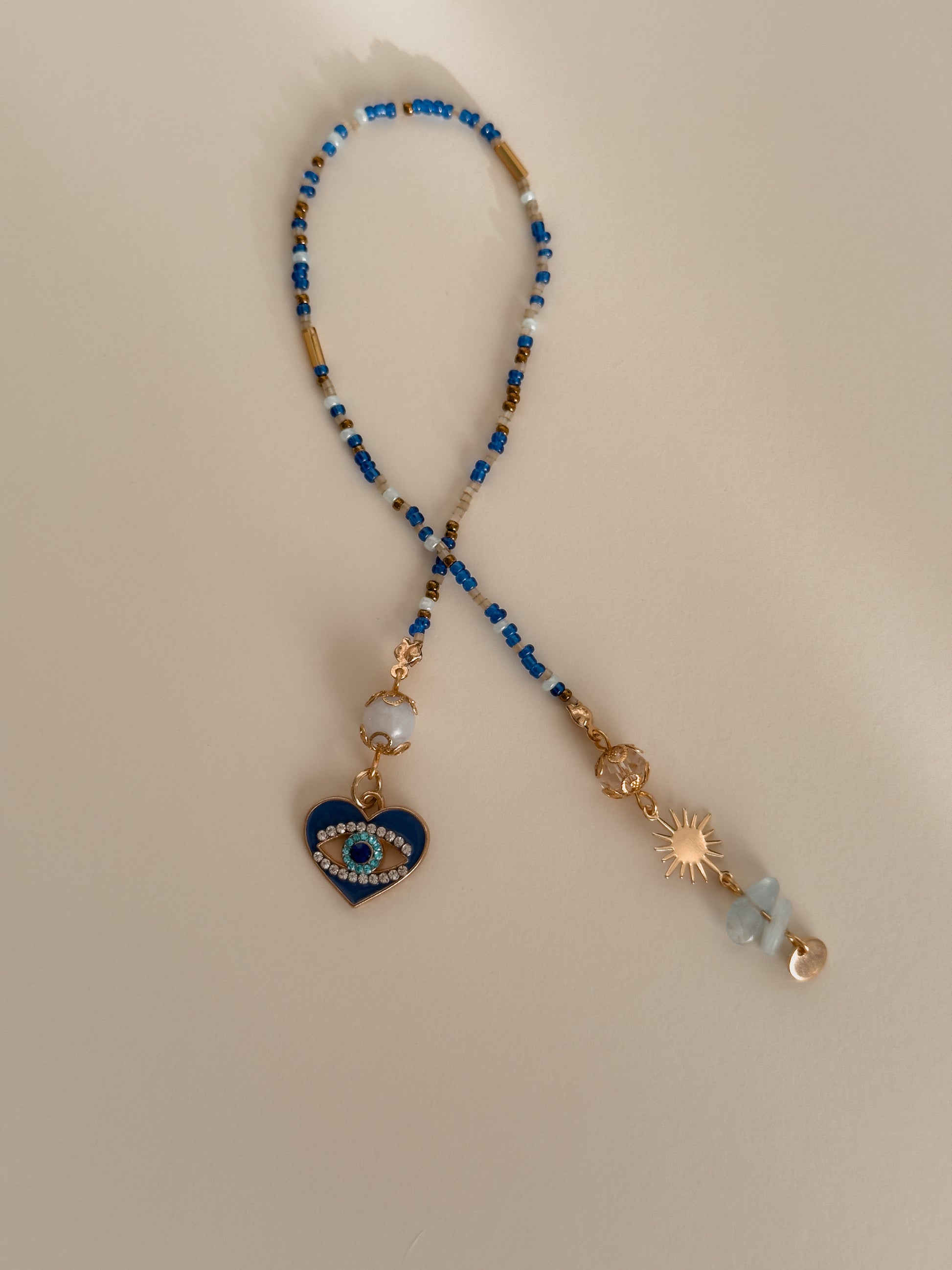 • Materials: Aquamarine gemstone, gold plated elements, seed beads.