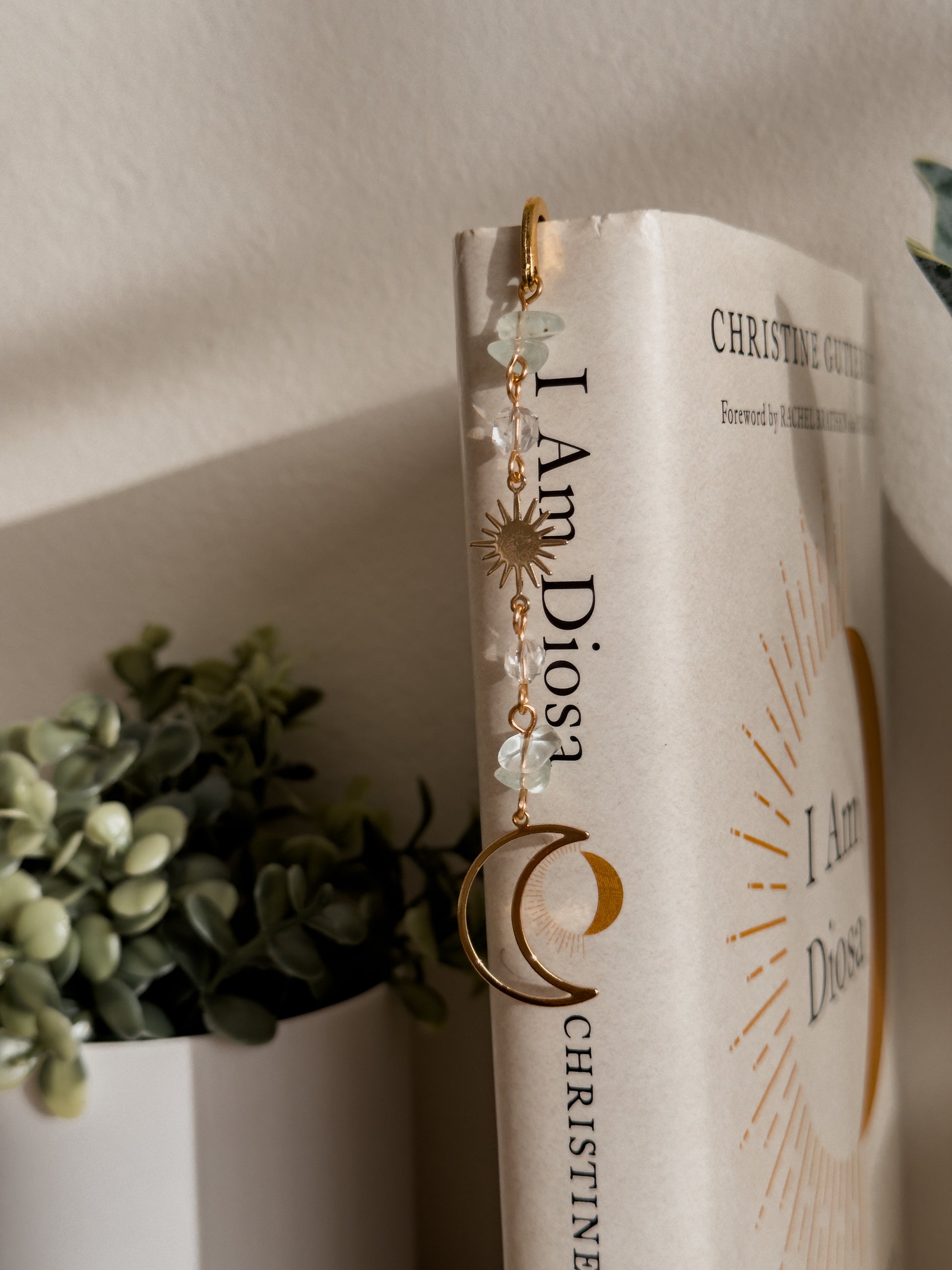 • Materials: Fluorite & clear quartz gemstone, gold plated elements, seed beads.