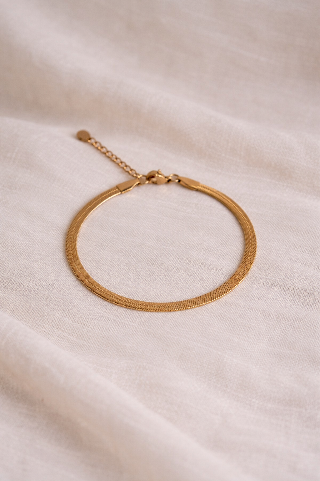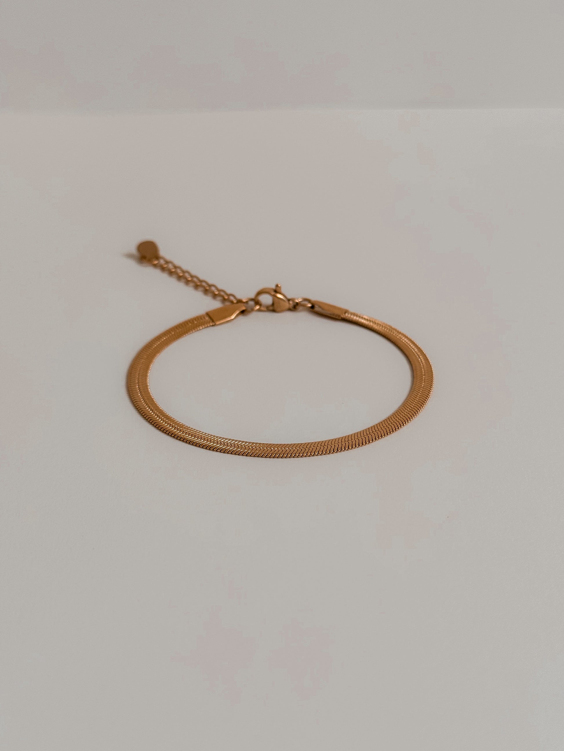 Whether worn solo for a minimalist look or layered with other favorites, this 4mm gold-plated herringbone bracelet is a must-have for those who appreciate timeless style and versatility.
