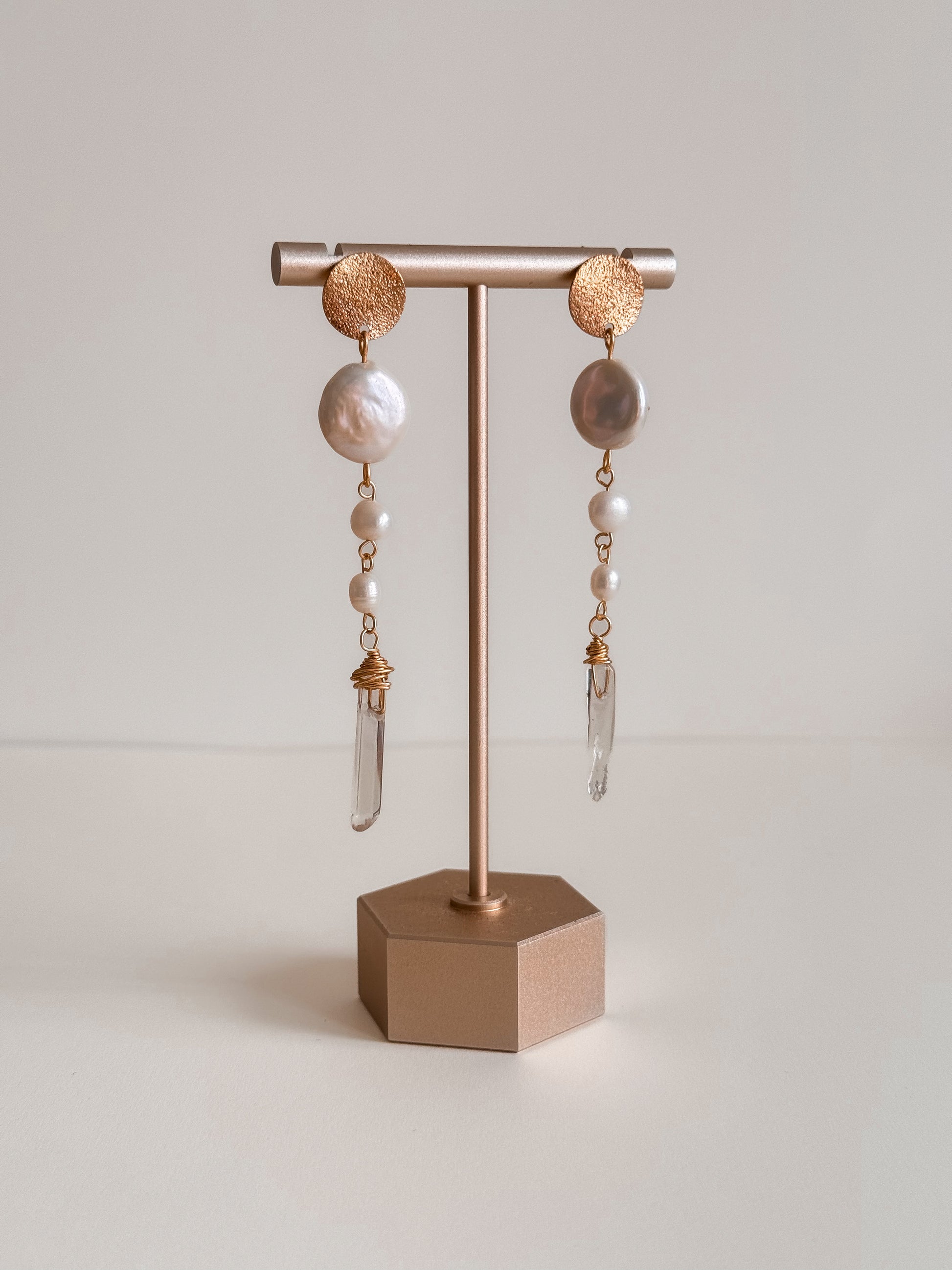 - Clear Quartz Crystals: Accentuated with shimmering clear quartz crystals, these earrings catch the light beautifully, adding an ethereal touch to your look.