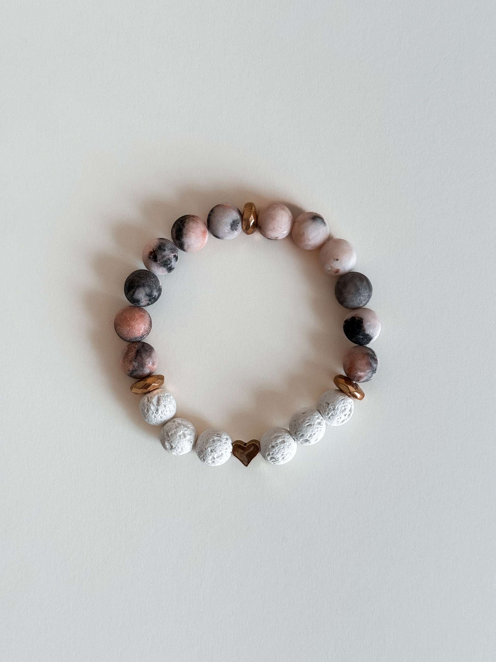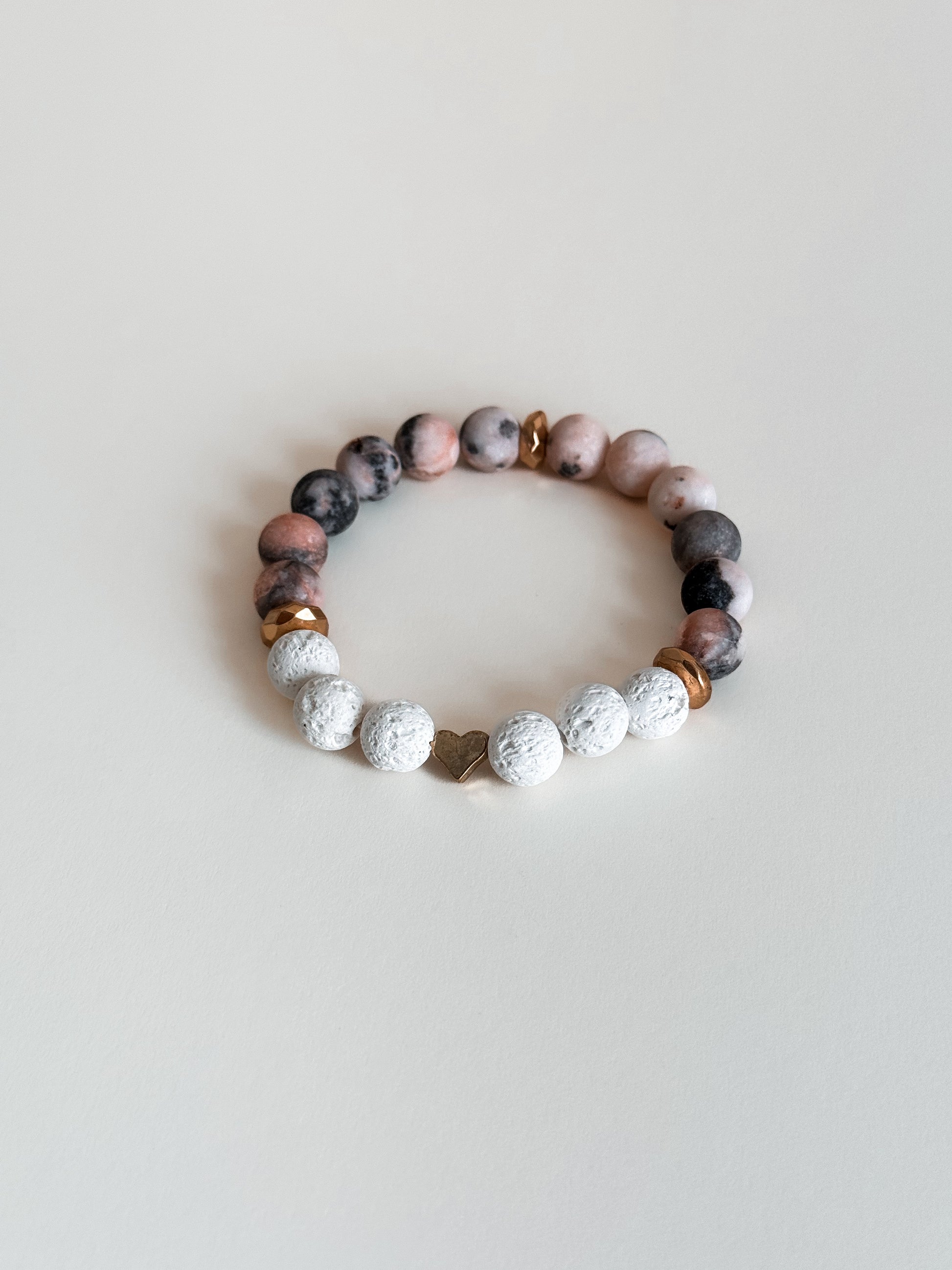 Infuse your day with love and balance with this petite 6.5-inch bracelet, featuring pink zebra beads for grounding and white lava beads for calming energy. Accented with a small heart, this piece is a sweet reminder to stay connected to your heart and centered in your purpose. Whether you’re embracing self-love or simply seeking a meaningful accessory, this bracelet brings a touch of warmth and harmony to everyday life.