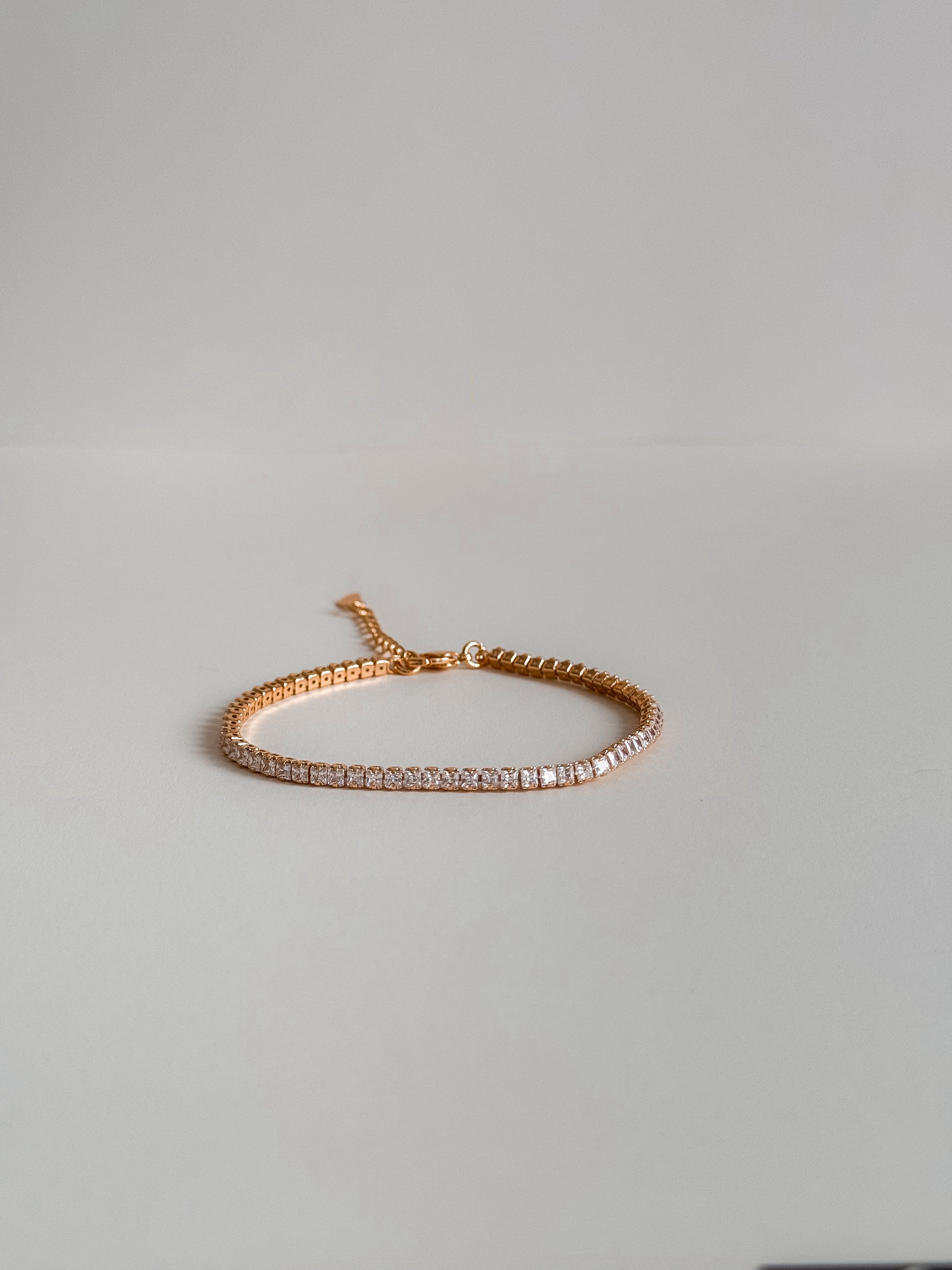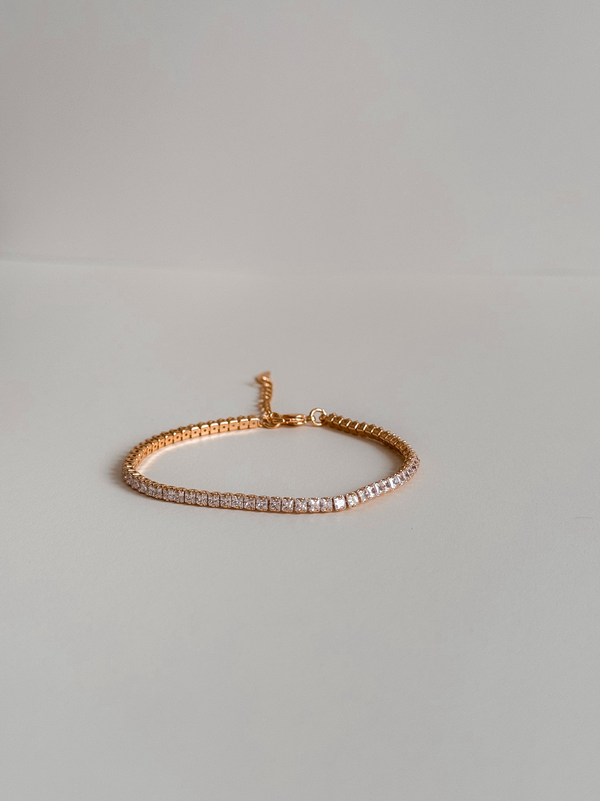 Elevate your style with this timeless gold-filled tennis bracelet, a piece that embodies elegance and sophistication. Featuring brilliant, hand-set cubic zirconia stones that shimmer with every movement, this bracelet offers the perfect blend of affordable luxury and everyday wearability.