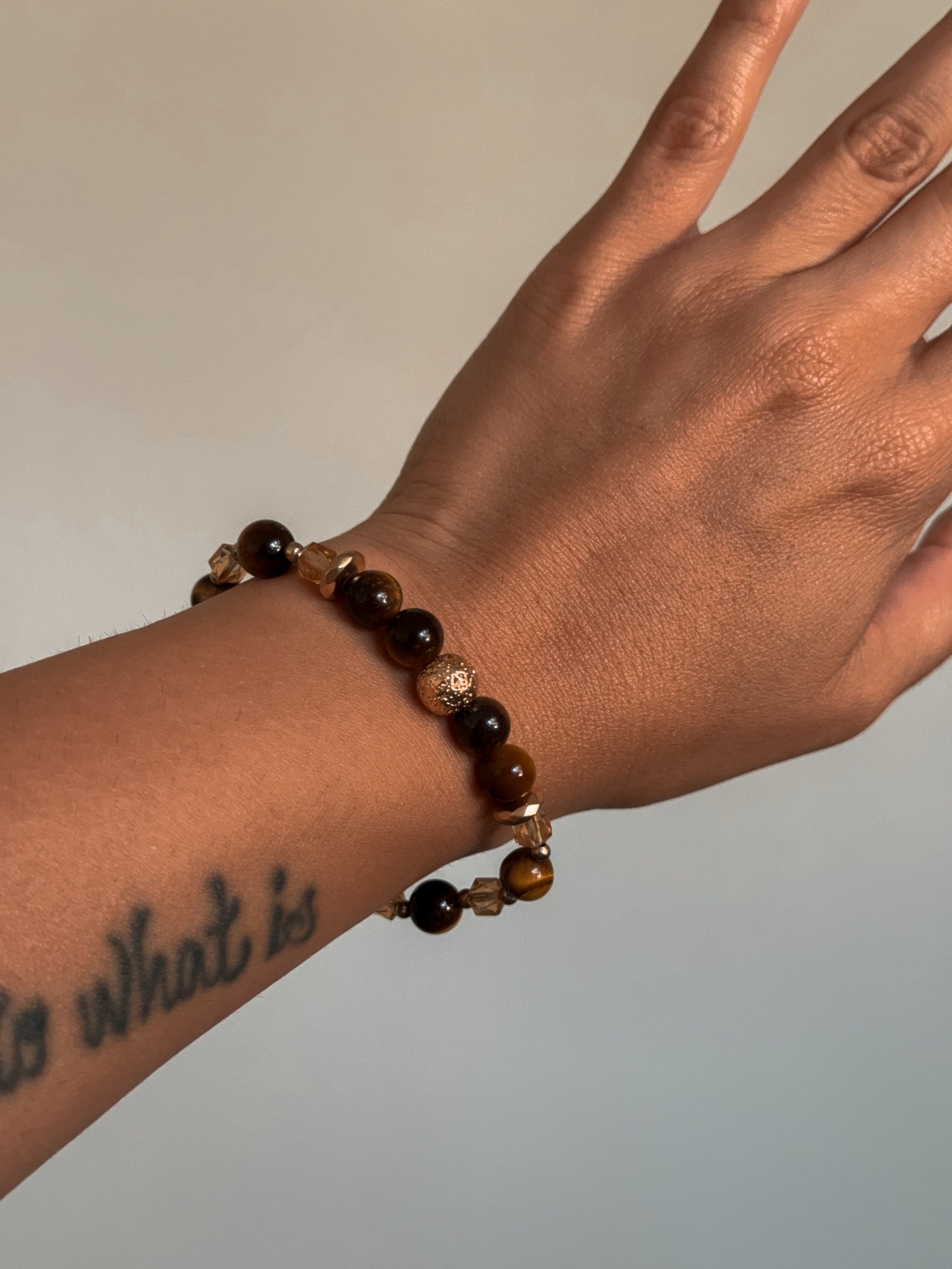 Tiger's Eye is a powerful stone known for its grounding and protective properties. It is believed to bring courage, confidence, and strength, helping to overcome fear and anxiety. This crystal enhances focus, clarity, and decision-making, making it useful for achieving goals and manifesting intentions. It also promotes balance and harmony, stabilizing mood swings and encouraging a positive outlook. It is often used in meditation and healing practices to promote mental clarity and emotional stability.