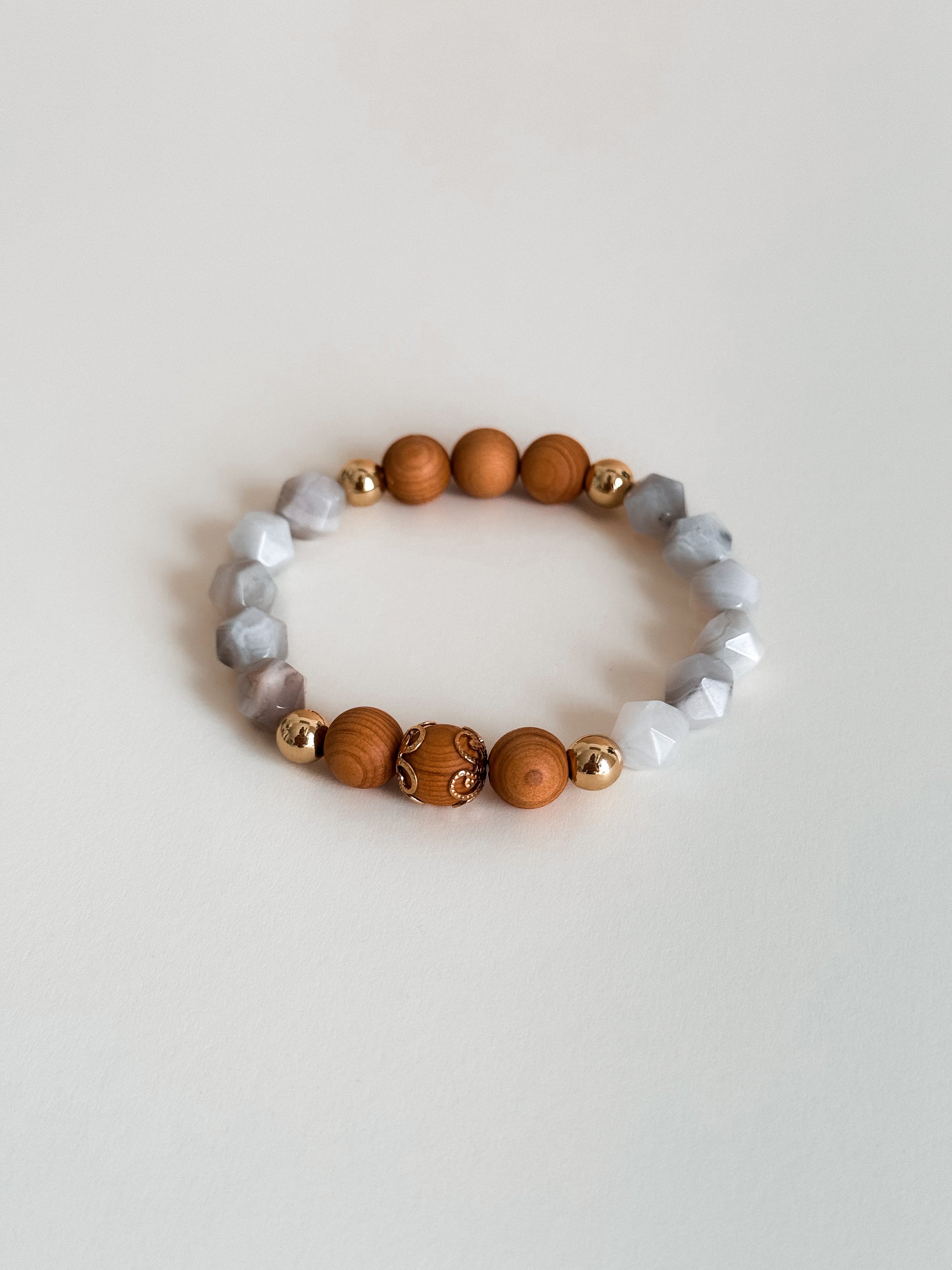 Find calm with this petite White Lace Agate Crystal Bracelet, crafted at 6.5 inches for a perfect, comfortable fit. White lace agate is known for bringing peace, clarity, and balance to your life, making it the ideal stone when you need to stay centered. The earthy wood beads add a natural touch, grounding your energy and connecting you to what really matters. This piece is all about helping you feel more at ease every day, no matter what comes your way.